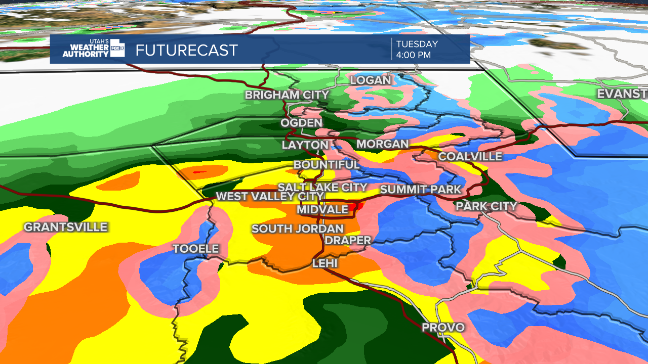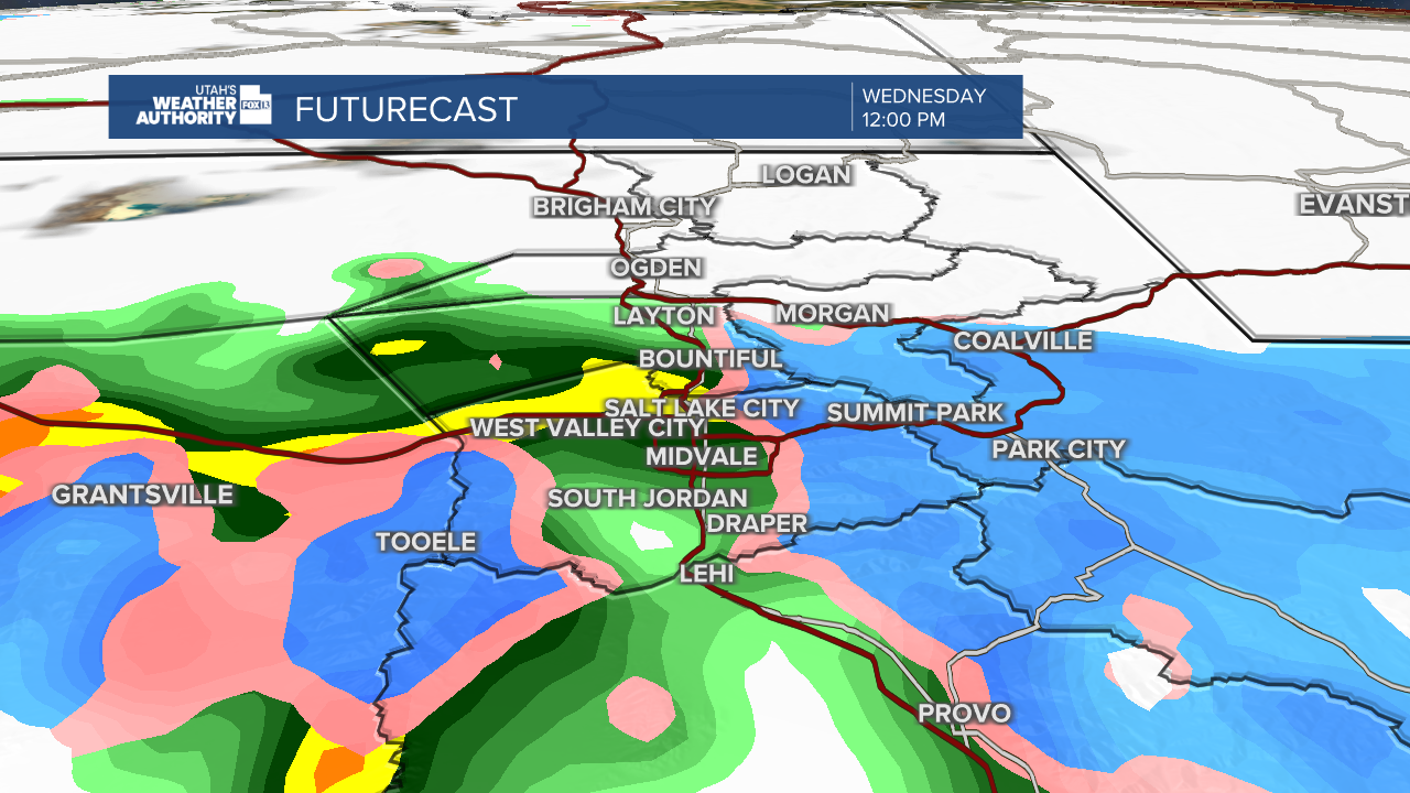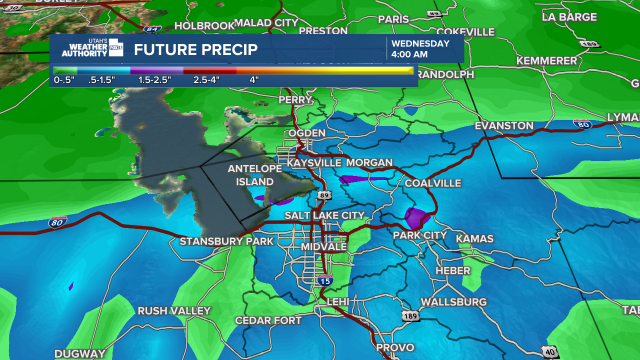 The valleys will pick up half an inch to 1 inch of rain by the end of the day Wednesday. The Salt Lake City Metro will see around 1 inch of rain.