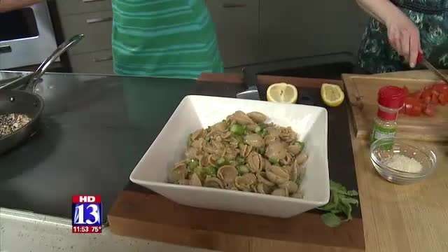 Bring a large skillet or Dutch oven up to medium-high heat. Add canola oil; sauté the garlic and asparagus with no salt seasoning and pepper for 3-4 minutes or until asparagus has slightly softened. Add the drained pasta and pasta water to the pan. Cook, stirring frequently, for 2-3 minutes over medium heat. Stir in oil, lemon juice, lemon zest and tomato to the mixture. Cook 1 minute. Turn off heat. Add Parmesan cheese, basil and nuts, if using. Taste, add additional no salt seasoning and pepper, if needed. Serve immediately.
