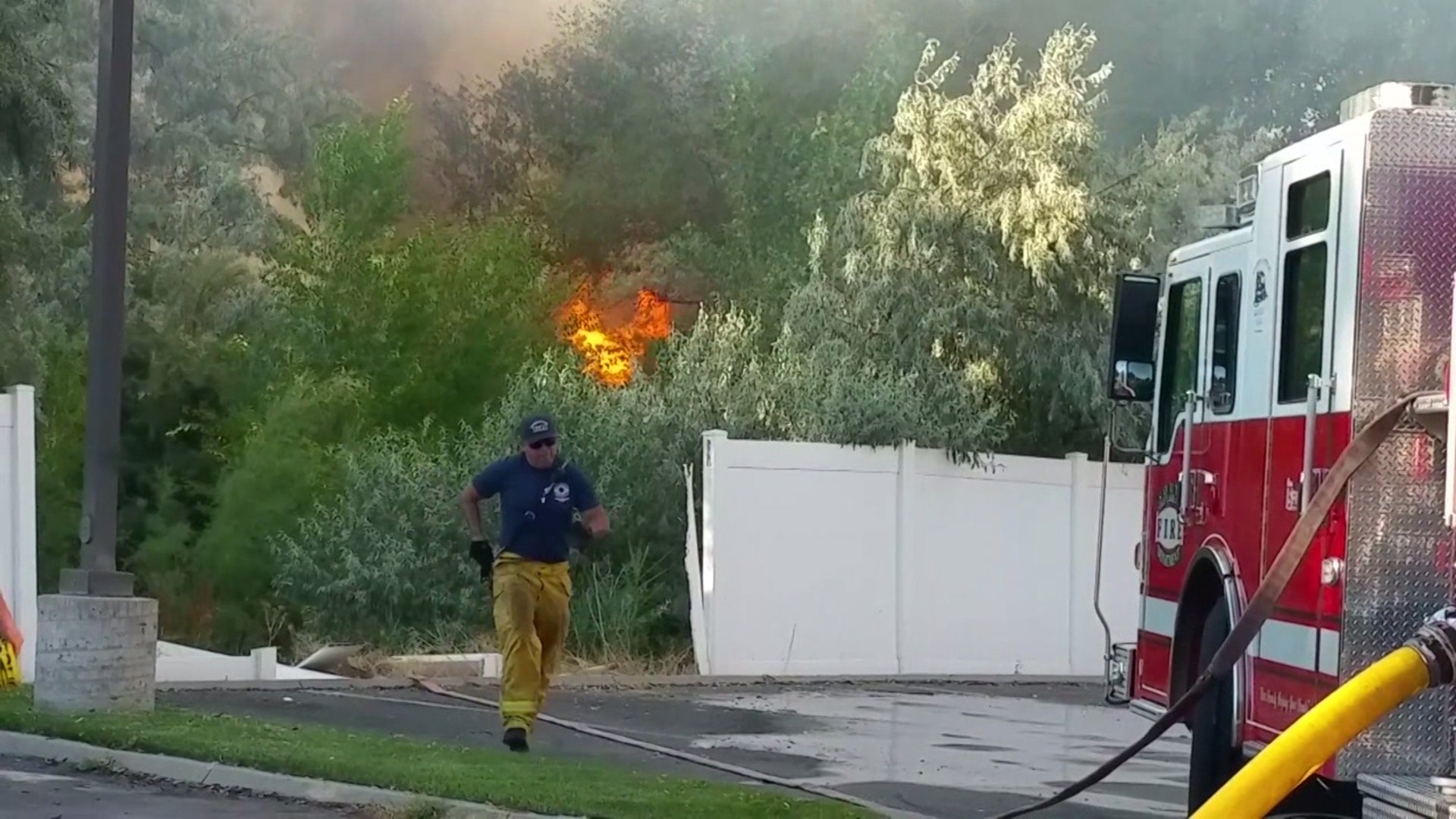 TAYLORSVILLE, Utah -- Firefighters with Unified Fire Department battled a fire that threatened an apartment complex in Taylorsville Thursday evening.