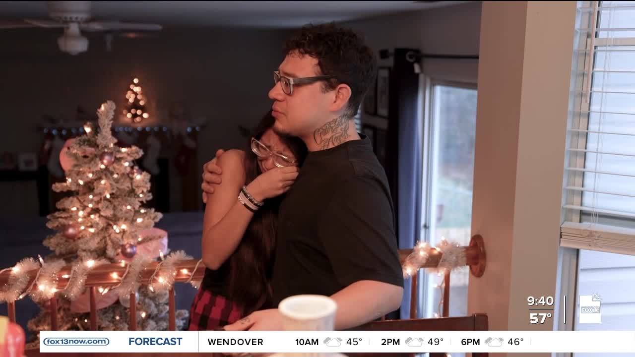Dew shared the family’s story with the FOX 13 Dream Team, powered by Mountain America Credit Union and support from Master AutoTech. That led Good Day Utah anchor John Franchi and Sharlene Wells from Mountain America to knock on Jonathan and Jayleen’s door with a surprise.
