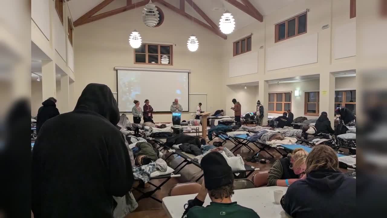 Dozens of people, who slept on camping cots, were able to eat hot meals, warm up, watch movies, and simply have a safe place to rest during "Code Blue Movie Nights" at St. Mark's Cathedral and First United Methodist Church in Salt Lake City.