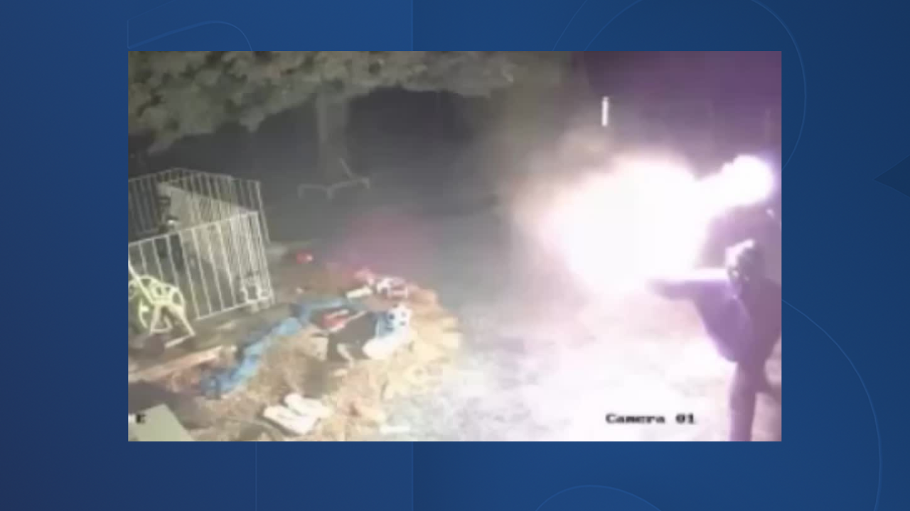 Early Sunday morning, security camera video showed a suspect, later identified as Barney, throwing a flaming object through a bedroom window at the home, setting it on fire, and awakening the residents.