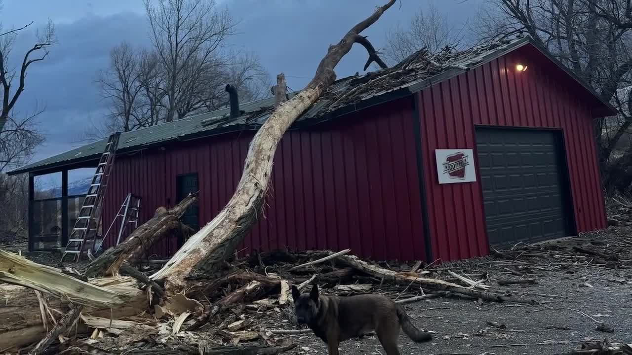 “It broke six rafters, went through the roof, the 20-foot log came down through the roof into the roasting place,” said Jamie Buttars, a co-owner of Cache Coffee.