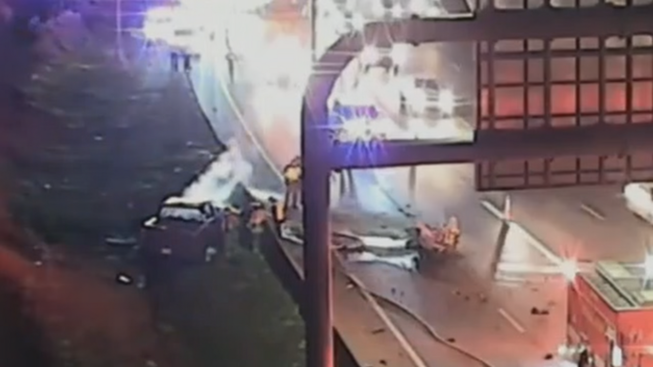 It was still dark outside when the crash occurred and the pickup truck almost immediately caught fire.