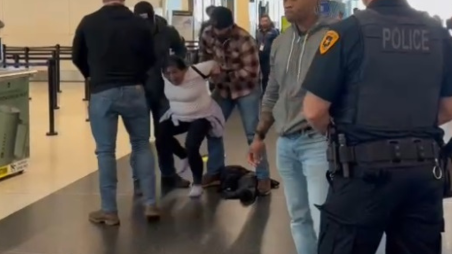 Video taken by Shannon Hale of Wednesday afternoon's incident shows a woman, later identified as Marta Brizeyda Renderos Leiva, screaming while being brought through the airport by plain-clothed ICE agents. A woman can be heard asking agents to "have mercy" on the lady.