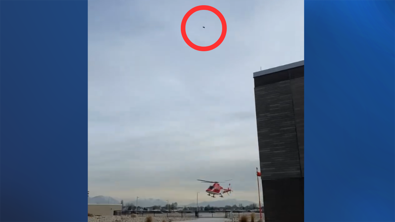 In a video shared by the South Jordan Fire Department, a LifeFlight helicopter landed at Primary Children's Hospital at 3:40 p.m. a drone was seen flying directly overhead.