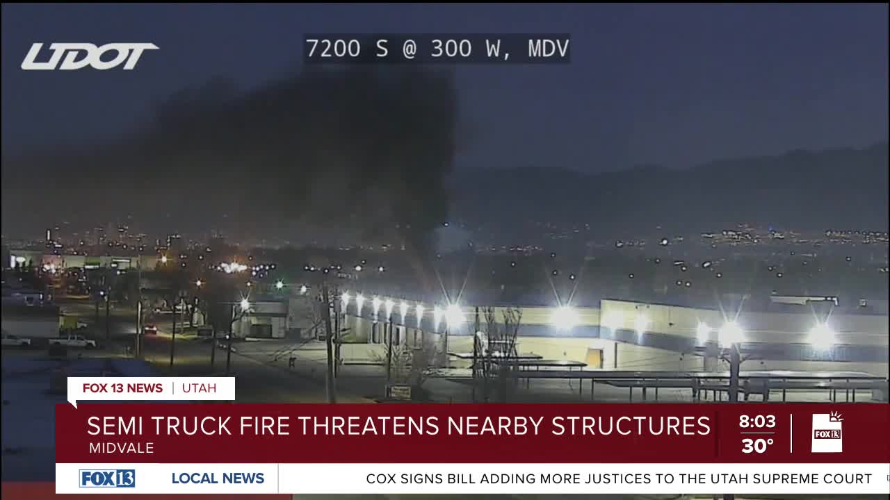 MIDVALE, Utah — A full fire crew was deployed Sunday morning after reports of black smoke led to the discovery of a semi truck fire in Midvale.