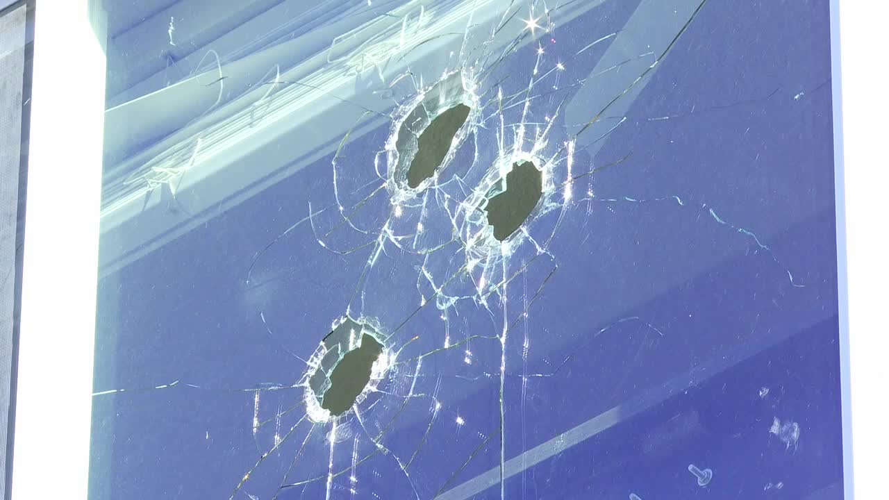 One of the officers was hit by a piece of debris that was hit by one of the gunshots, according to police.