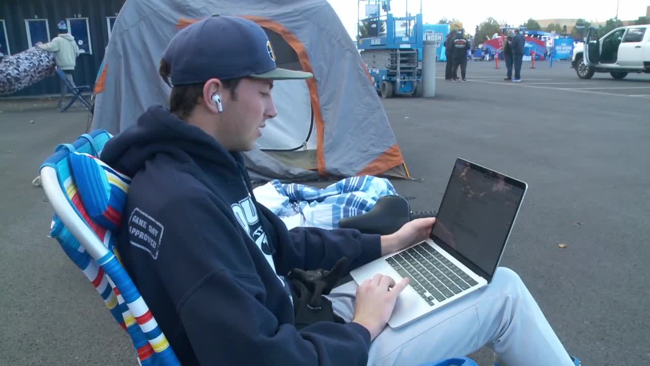 Hansen said she and her friends have a schedule to keep their place in line. “Some people have to go to class, so we take turns on who stays in the tent,” she said.