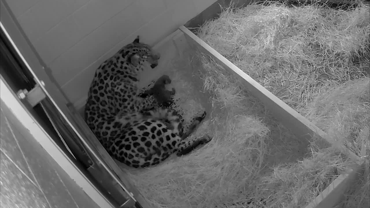 Zeya and her cubs won't be visible for zoo visitors for a period of time while they bond in their private den. In nature, the zoo says that female leopards remain secluded in their den following birth.