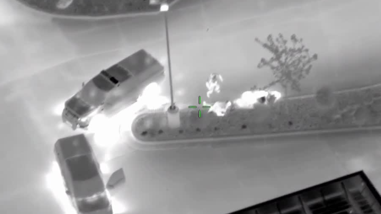Video from the helicopter shows Hymas nonchalantly refilling the motorcycle with gas, seemingly unaware of the surveillance overhead.