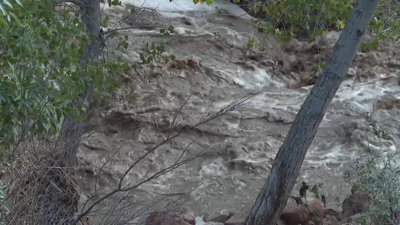 At Zion National Park, a brief but intense downpour on Thursday afternoon temporarily turned the flood watch into a flood warning. The Virgin River rose as much as 42% within a couple of hours before beginning to recede.