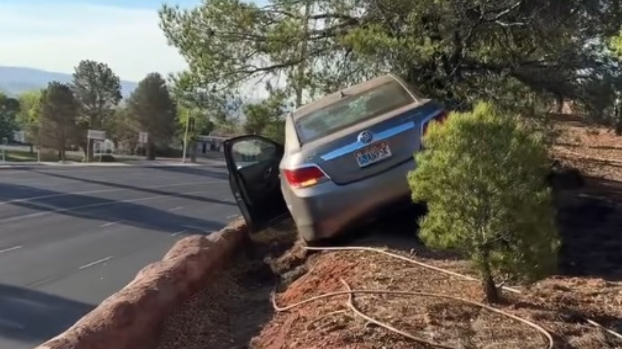 Immediately following the morning incident, St. George Police Officer Tiffany Mitchell shared video of the accident in which the Toyota could be seen inches from flying off Tech Ridge Drive and onto Bluff Street below.