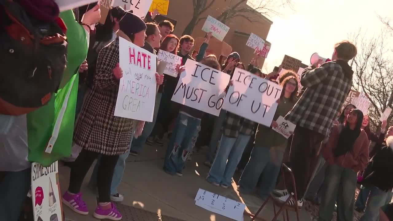 COTTONWOOD HEIGHTS, Utah — Thousands of Utah students walked out of their schools during class Friday to protest recent actions of U.S. Immigration and Customs Enforcement agents and those from other federal agencies across the country.