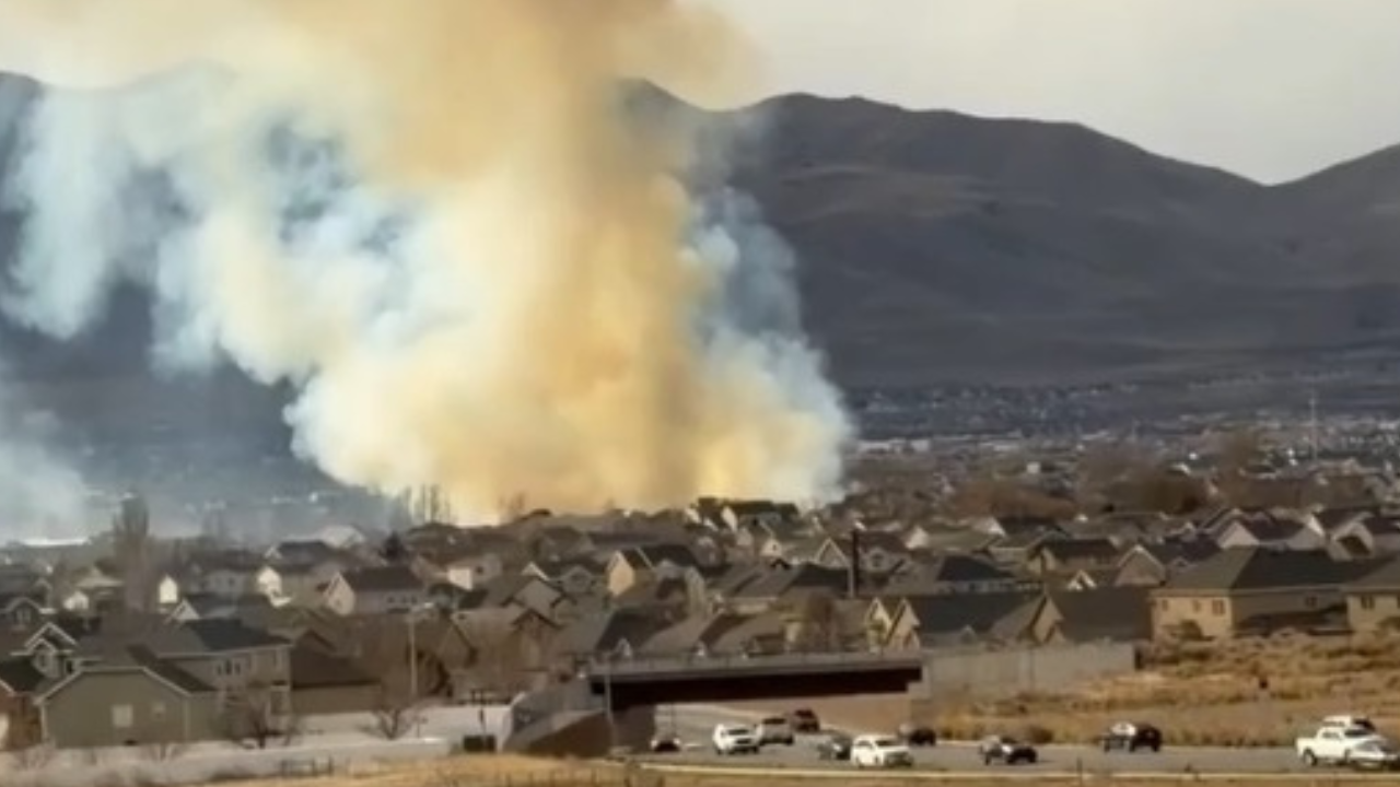 LEHI, Utah — A large fire was seen burning in a Lehi neighborhood Tuesday, with smoke being blown by the heavy winds that have created dangerous conditions across Utah.