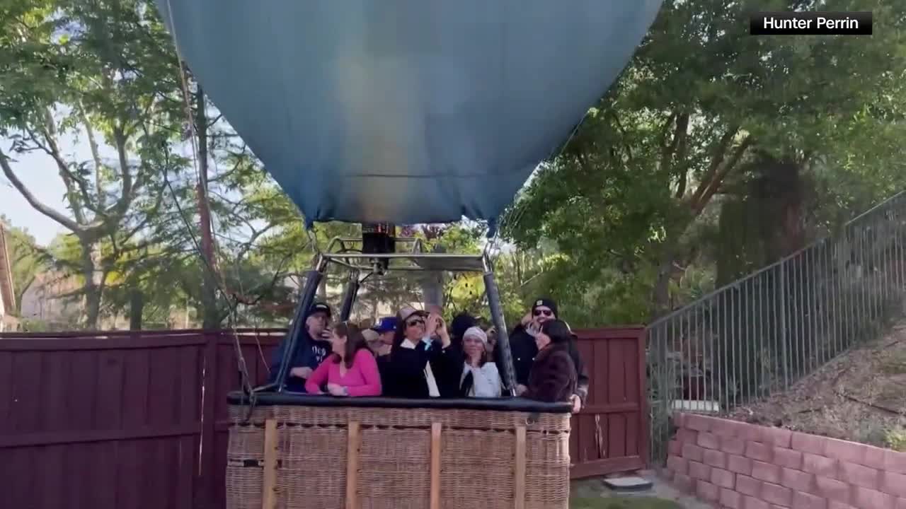 TEMECULA, Calif. — A balloon landed in a Southern California backyard — a balloon with 13 people.