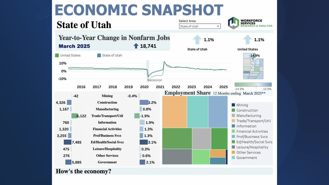 Weber County also faces a substantial impact with more than 9,000 federal employees, more than 7% of its total workforce, primarily from Hill Air Force Base and IRS operations.