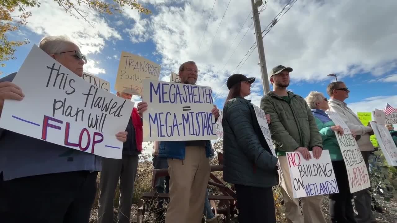 SALT LAKE CITY — Dozens of residents, advocates for the poor and religious clergy gathered on the edge of a field to protest plans for what they call a "mega-shelter" for those experiencing homelessness.
