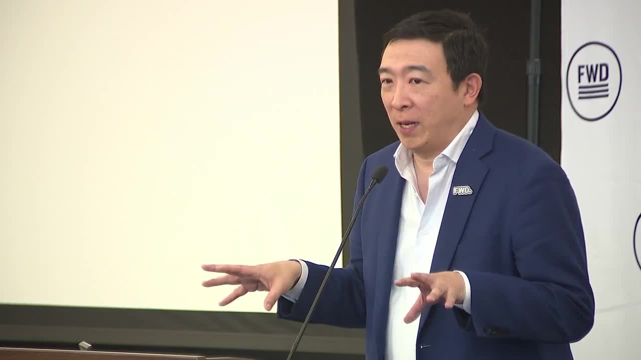 Yang appeared at the Forward Party of Utah's state convention on Saturday, where he urged the crowd of several hundred to get more involved and buck the two-party system. He blasted President Trump as an "accelerant to the disintegration of our institutions" and questioned if Republicans and Democrats could solve any problem for Americans. Instead, he urged continued involvement and investment in the Forward Party.