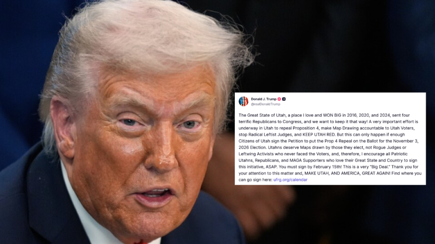 SALT LAKE CITY — President Donald Trump has entered the fight over Utah's congressional maps and redistricting, posting a message on social media Friday in support of the effort to repeal Proposition 4, the bipartisan anti-gerrymandering law previously passed by voters.