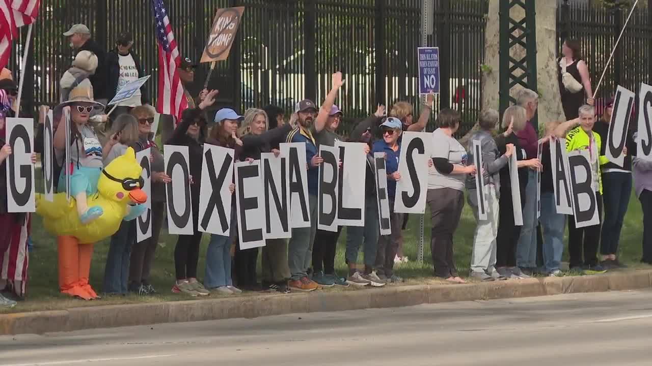 SALT LAKE CITY — Car horns honking could be heard up and down the streets in front of the Governor’s Mansion on Saturday, where many Utahns were gathered to protest the ICE Detention Center that's set to come to Utah.