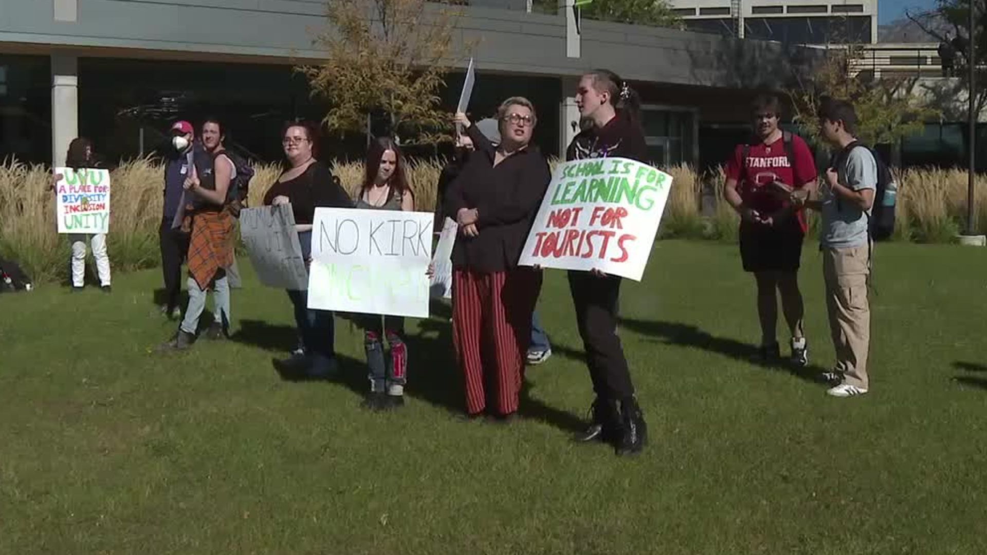 OREM, Utah — As a Utah Valley University committee works to commemorate the late Charlie Kirk, students gathered in the campus courtyard Tuesday to voice their opposition to a memorial.