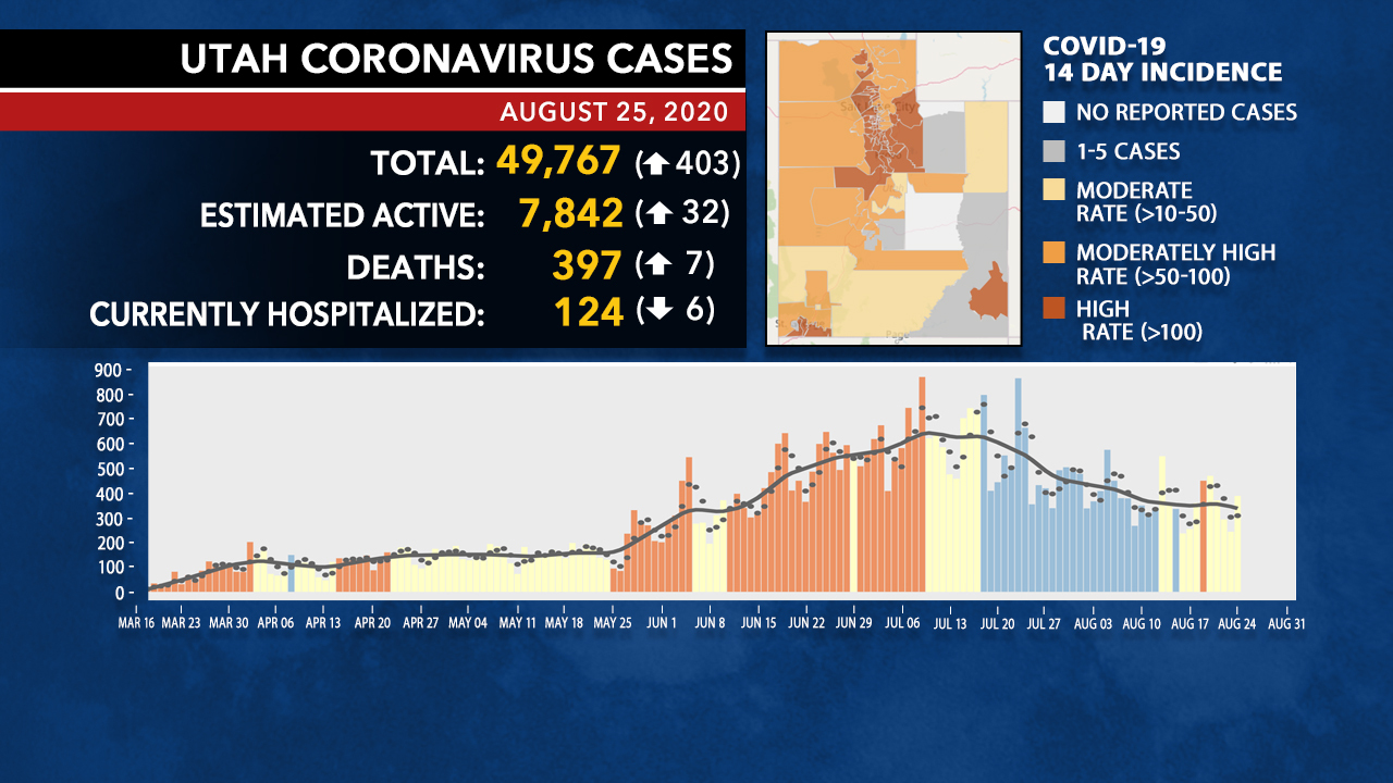 Utah Health Dept. reports 403 new cases of COVID-19 and seven additional deaths Tuesday