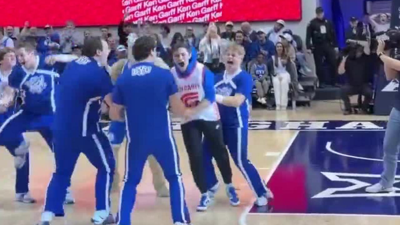 First, Cougars fan Thomas Davis hit a half-court shot to win $4,000. BYU junior Ethan Graham followed that up by hitting four straight three-point shots in a 30-second window to win a two-year lease on a brand-new Volkswagen Tiguan.