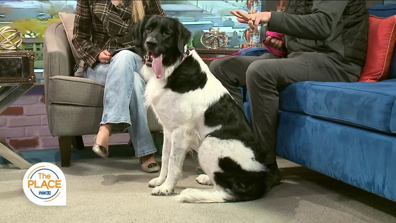 She's a five-year-old St. Bernard goldendoodle mix who is good with other dogs, cats and kids.