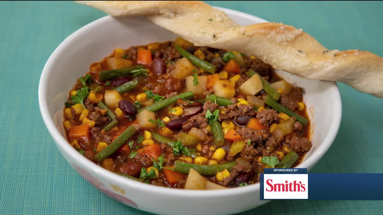 Smith's Chef Jeff Jackson shows how to make a hearty, one-pot Shipwreck Stew packed with beef, vegetables, and potatoes, served with buttery parmesan breadsticks for a comforting, family-friendly meal.