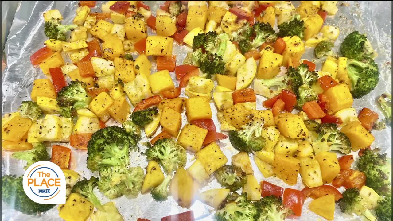 Spread the veggies onto a foil lined baking sheet in a single layer.