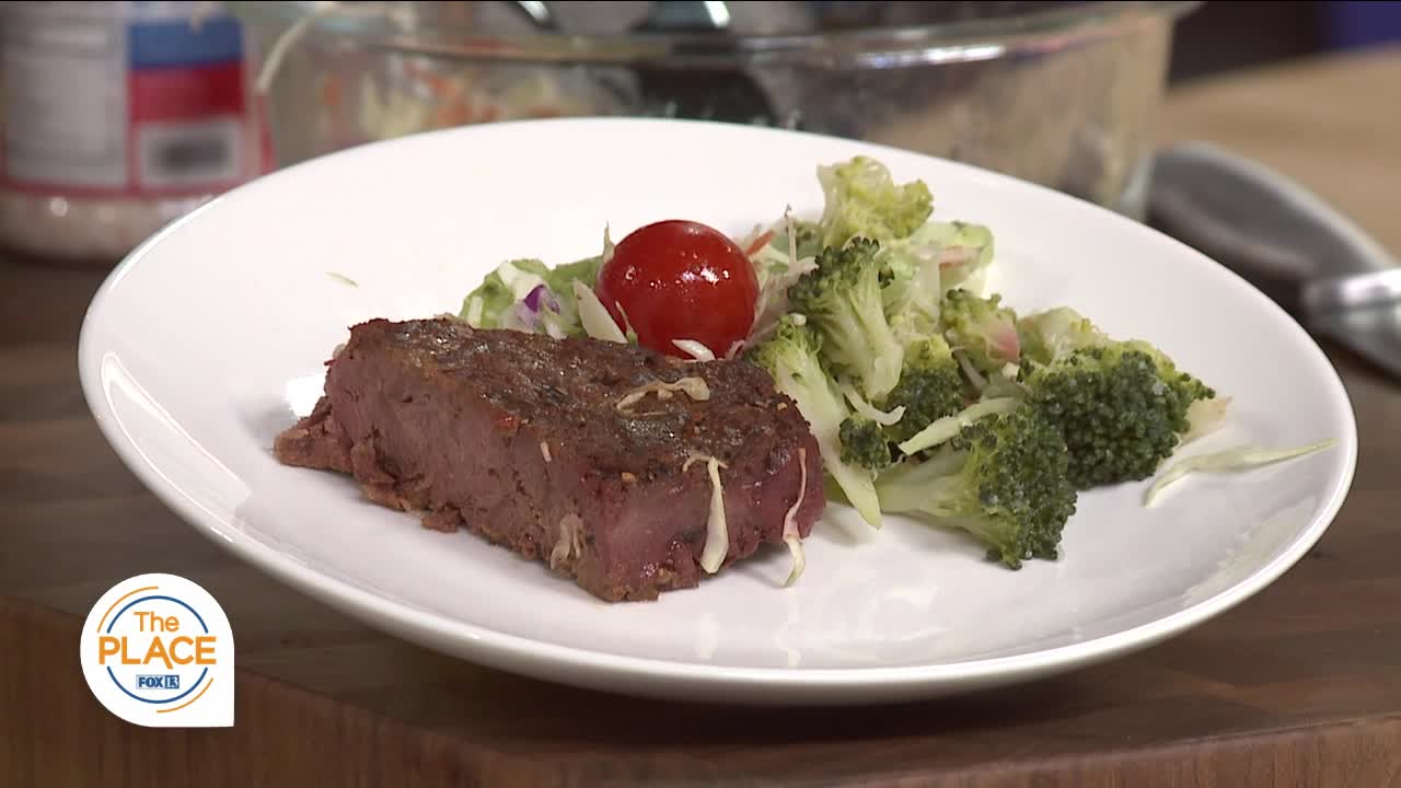 #vegansteak is trending on TikTok, so co-host and Registered Dietitian, Ashley Hawk, decided to make one in the kitchen.