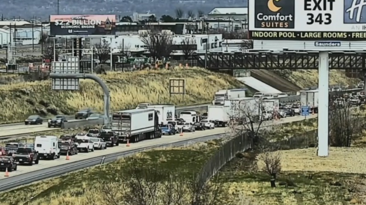 The right lane is currently closed, with two lanes of traffic on northbound I-15 remaining open.