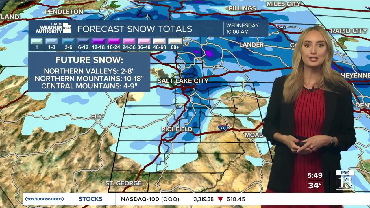The next storm will move in tomorrow and bring more snow through Wednesday. The heaviest snow will be in Cache Valley and over the Northern Mountains. Otherwise, several inches are possible in the Northern Valleys. 1-3 inches will be possible in the valleys south of Utah County. Precipitation should stay as rain in St. George.