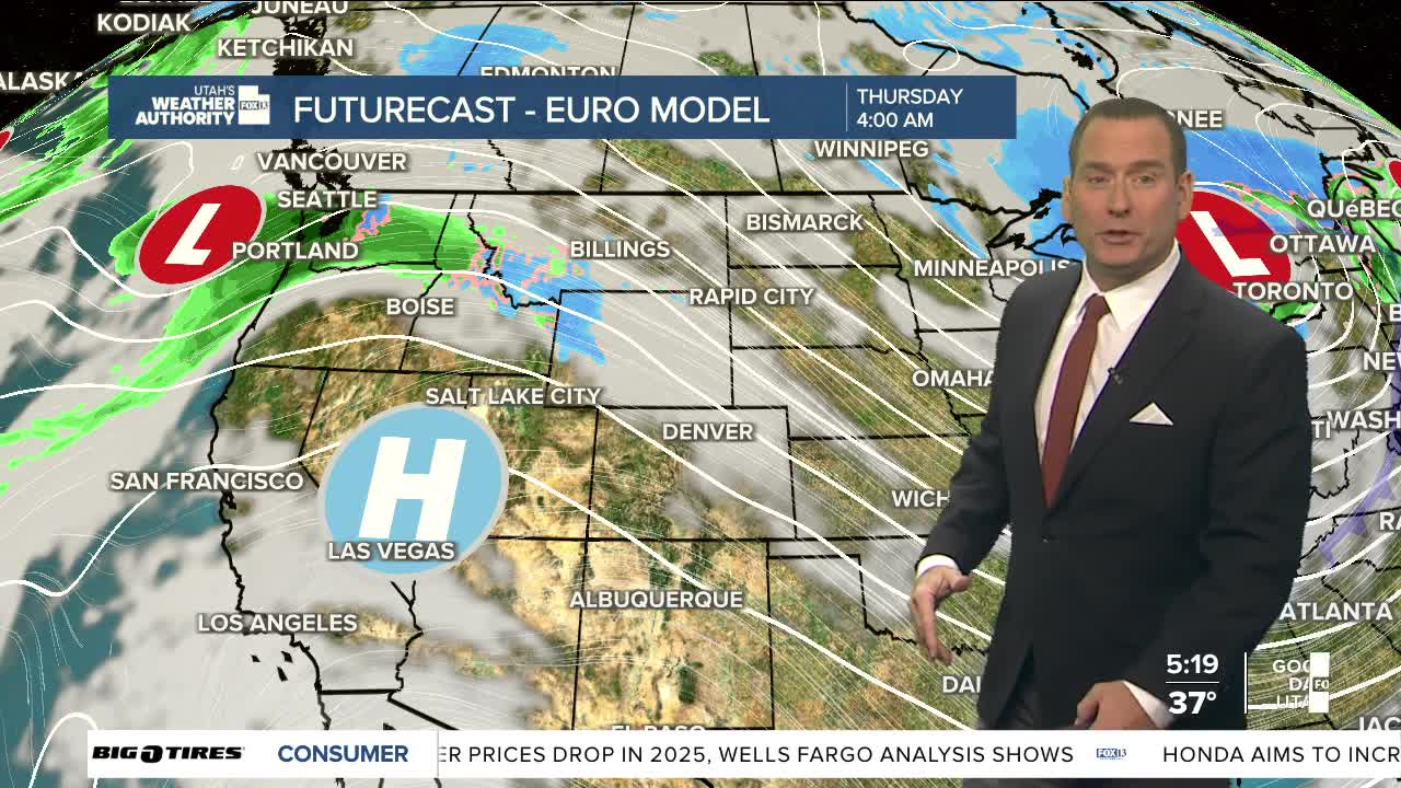 High pressure will build back over Utah during the middle of the week, keeping it dry & bringing slightly warmer temps. Great news for holiday travel!