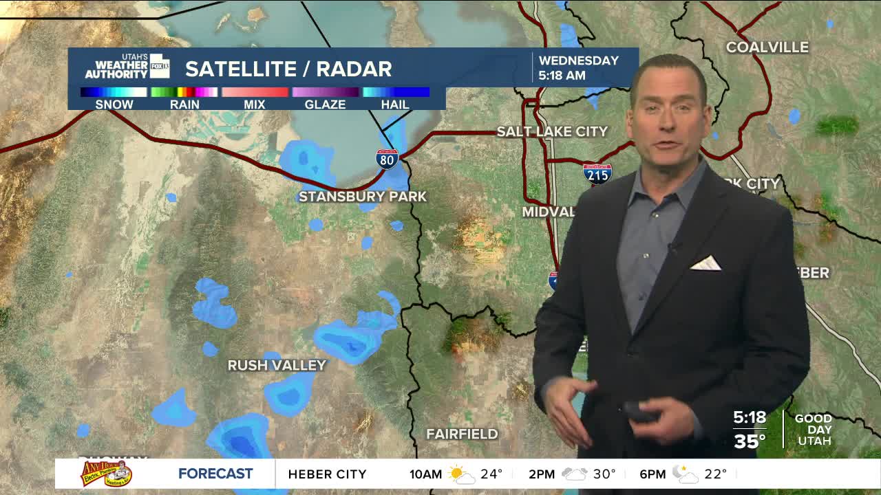 Light snow, mainly across central & southern UT will taper off by afternoon as the storm winds down. A warmer, wetter storm will bring valley rain & heavy mountain snow to the north this weekend.