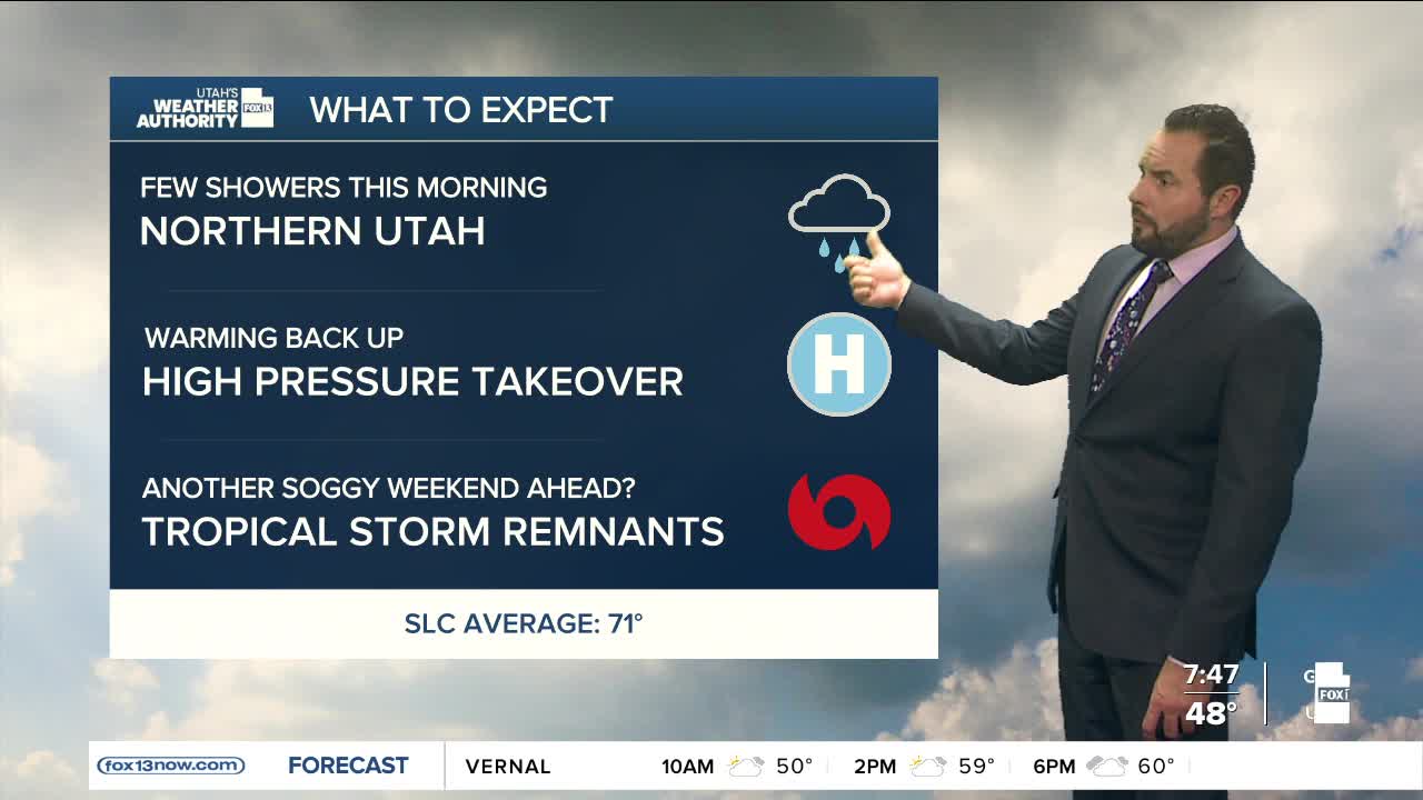 As for today’s forecast, a trailing wave of moisture will move through the northern half of the state, bringing a few scattered showers to far northern Utah.
