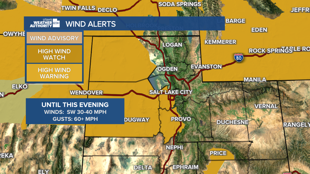 Salt Lake, Davis, Tooele, Box Elder, Carbon, Duchesne and Rich counties are all under the Heavy Wind Warning.