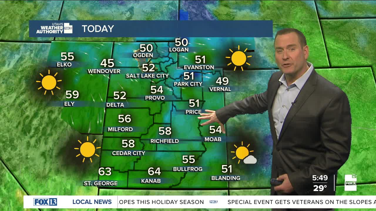 It's a mild start to the week with temps still running about 10-20 degrees above average. Valley haze will stick around with moderate air quality expected along the Wasatch Front.