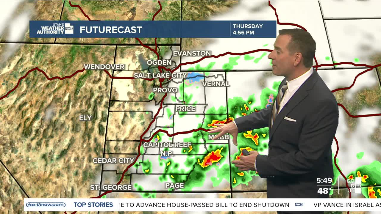While Northern Utah will have mostly sunny and mild conditions on Thursday, wet weather continues to linger across the south.