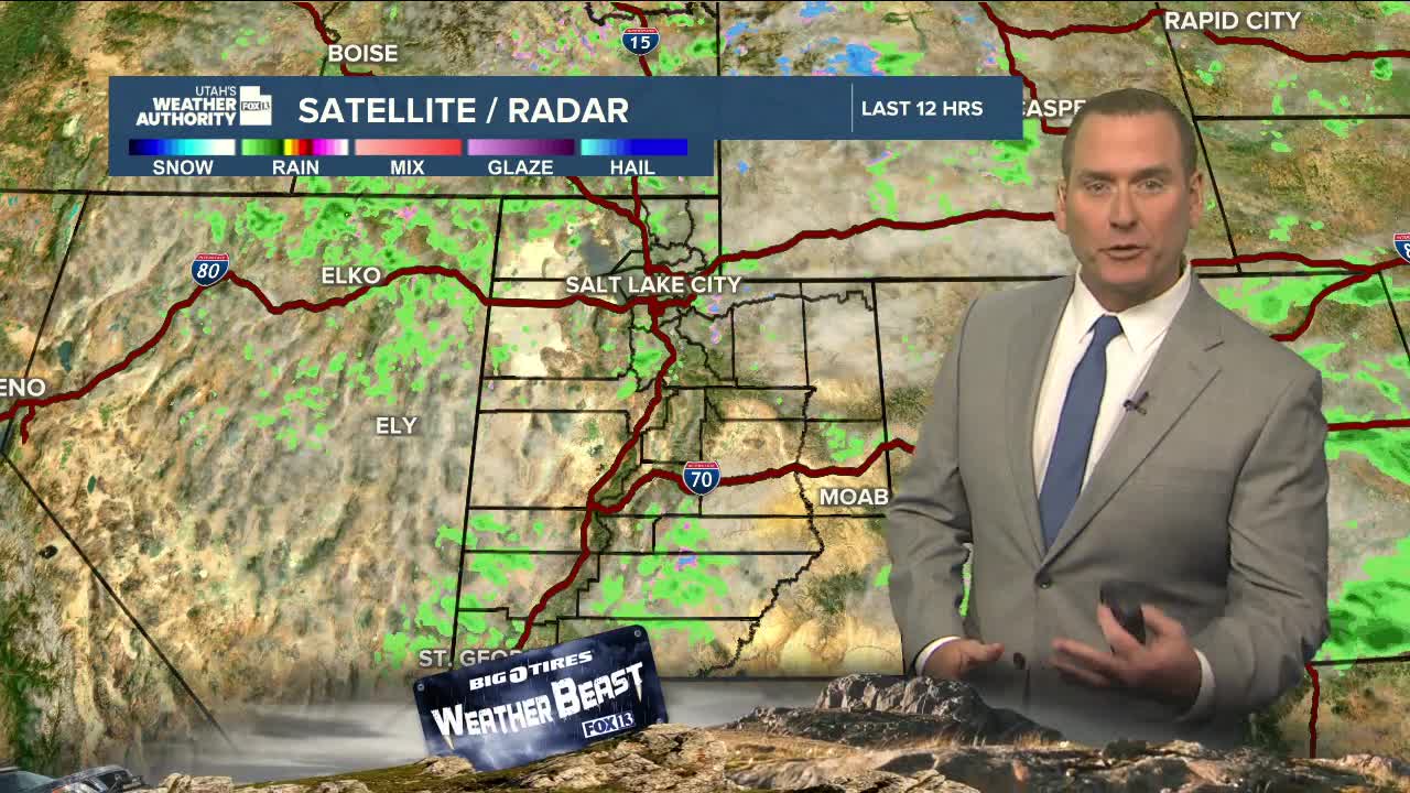 A weak system crossing Utah will bring a chance of high-based showers & t- storms this afternoon & evening, mainly across Northern Utah. If showers do pop up, brief gusty winds are more likely than rain. The best chance of precipitation reaching the ground would be over the mountains and across Eastern Utah.