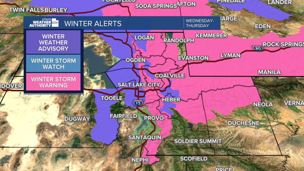 Other areas of northern Utah, southwestern Wyoming and southeastern Idaho will be under less-extreme Winter Weather Advisories.
