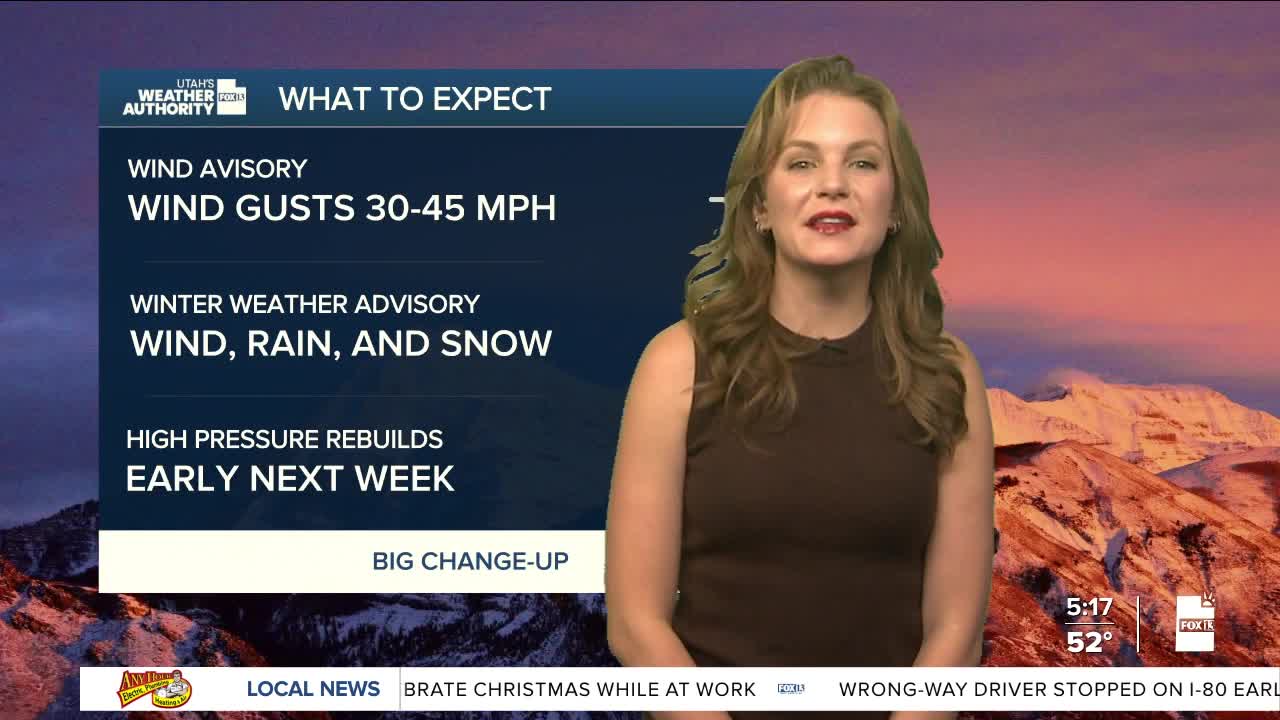 Wind gusts topping 45 mph will continue in parts of western Utah through Friday afternoon.. Mountain areas across the state could see 6 to 12 inches of snow by late Saturday, with totals reaching up to 20 inches locally.