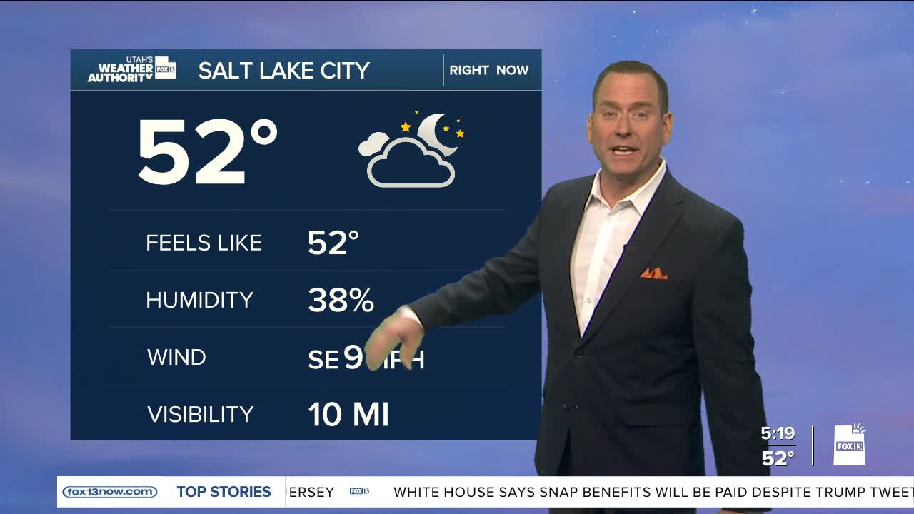 It's going to get a lot cooler behind the front. Temps will drop down into the mid to upper 50s along the Wasatch Front, which is average for early November.
