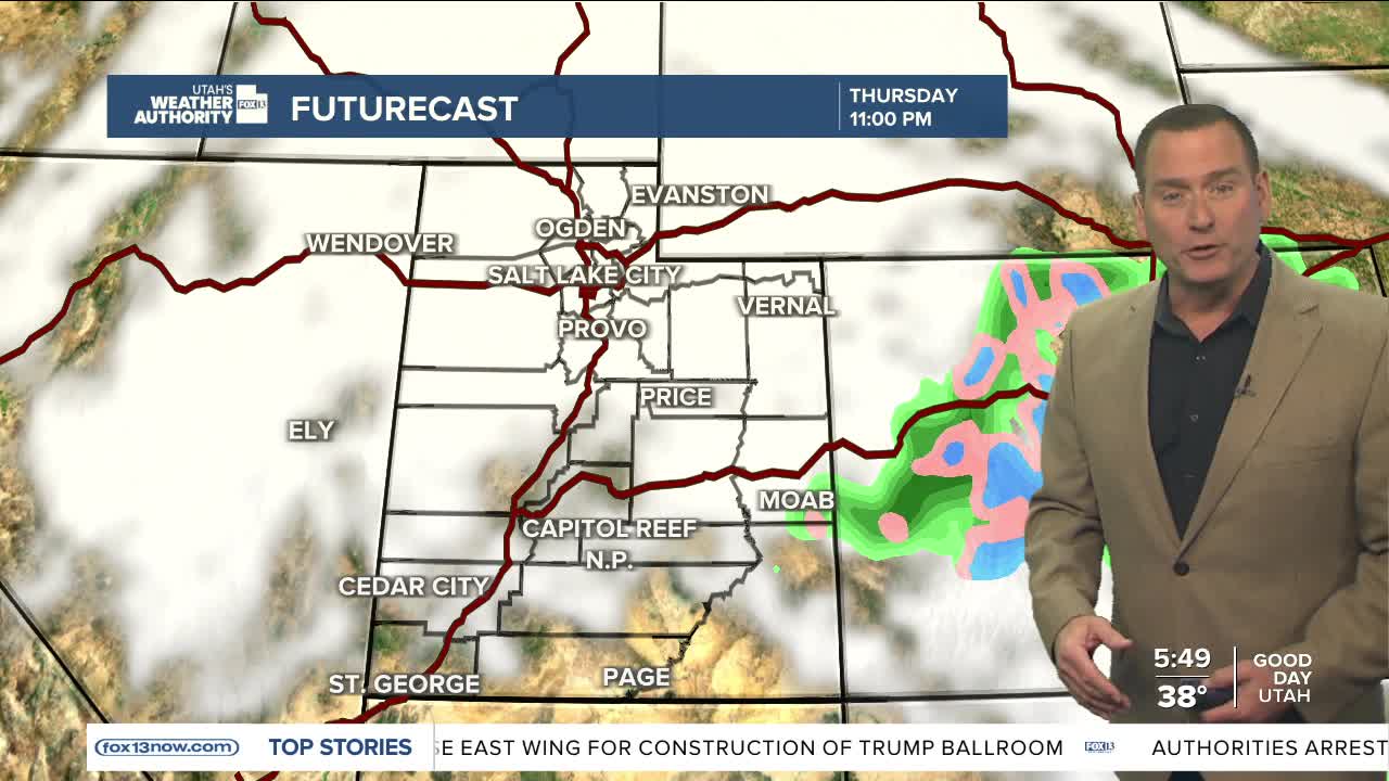 The next storm will move in from the south and bring scattered showers and thunderstorms to central and southern Utah from Wednesday evening into Thursday evening.