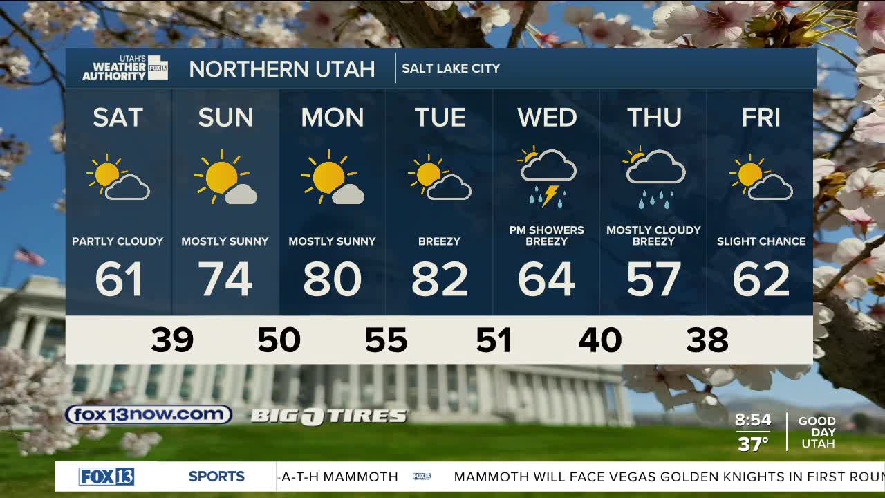 We're warming up this weekend as high pressure builds into the region. The pattern shift will bring a stretch of mostly dry weather into early next week. Temperatures will climb back above normal by Sunday, with the warmest days expected Monday and Tuesday. In northern Utah valleys, highs are forecast to reach the mid-70s to low 80s. Far southern Utah will heat up even more, with lower valleys pushing into the mid to upper 80s.